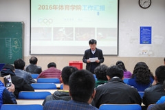 院长杨磊对学院2016年的工作做了全面系统的报告。报告中就学科建设快速发展,学科水平显著提升;专业建设水平提升,人才培养日益规范;科研实力不断增强;体育竞赛成绩突出等方面,全面总结了学院在过去的一年取得的成绩,同时也指出了学院发展过程中面临的机遇和挑战,明确了学院未来一年在党建与思想政治教育、教学、科研、竞赛、师资队伍建设、群体活动、场馆改善和学生管理等方面的具体工作目标。随后,a片动画