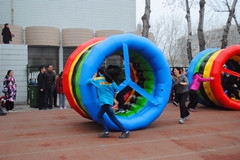 教职工分为两队,每队三人一组进行接力赛。然后紧张的比赛开始了,老师们一改往日的严谨,沉浸在比赛的欢呼喝彩声中,尽情享受着活动带来的乐趣与快乐。在“动感五环、旋转向前”比赛中,有的老师被五环绊倒,没等站稳又继续跑,接着又被绊倒,又匆忙起身跑,一路跌跌撞撞奔向终点;还有的老师由于跑动过快,偏离了方向,但仍毫无顾虑地跑着,逗得观众前仰后合。比赛结束后,a片动画