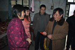 在贾同学家,老师们与她的母亲进行了亲切交谈,深入了解了其家庭境况。贾同学父亲几年前不幸因车祸去世,弟弟残疾,母亲有腰疼病,家里只靠几亩薄田维持生活,家庭经济非常困难。但贾同学十分懂事,平时很体谅母亲的难处,她学习勤奋认真,生活特别节俭。走访小组的领导和老师为他们送上一些生活必需品及慰问金,并鼓励她要克服暂时困难、珍惜学习机会,并且要自强不息,不坠青云之志,靠自己的努力实现自己的人生理想。纯朴、敦厚的学生母亲不断感谢学院对自己家庭的关注,感谢老师对孩子的教导之恩。