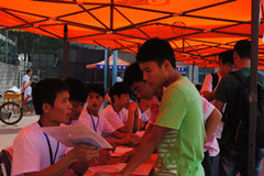 田径场上a片动画 各学院的“大本营”鳞次栉比地排列,方便新生寻找自己的学院,a片动画 的报到处设置在田径场东北角。a片动画 特设专家咨询区,为学生、家长答疑;为每个班级安排了助理班主任;并安排了各个专业高年级的学哥、学姐作为志愿者在现场详细告知每个新生入学需要注意的有关事项,并帮助他们更好地熟悉校园。a片动画 还特意在迎新“大本营”附近为家长搭建了许多遮阳棚,供他们休息。与往年一样,学校设置了绿色通道服务站为新生们提供贴心服务。