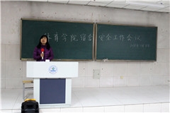 会议伊始,李涛老师对每周二例行的检查进行总结,分析了卫生与安全的问题,批评了卫生不达标的宿舍,同时指出了床帘、电源、电瓶车电池充电、吸烟等影响个人安全的现象,要求宿舍安全员要负起责任并排查安全隐患,若有安全隐患需及时反馈。为接下来的宿舍文明月活动做准备。接着,李谦老师提出五个意识:规则意识、责任意识、主人翁意识、团队意识,以此规范学生的行为。学院党委副书记、副院长卢琦,指出学校和学院对宿舍安全重视性极高,宿舍是窗口,通过窗口可以加深其他人对我院印象,并宣传a片动画