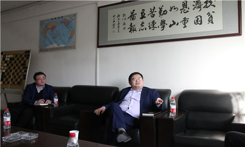党委书记杨杰、院长杨磊、院长助理王先亮与泰山体育产业集团总裁助理徐培明、华东大区总监张旭东等,进行了深入的会谈交流。