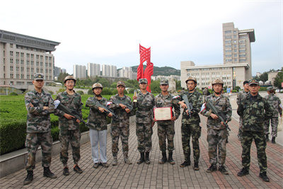 第一届学生军事技能大赛的冠军。赛场上参赛队员充分发扬了我院学生一不怕苦、二不怕累的顽强斗志,充分展示了体育精神、体育人,体育精神、体育魂的学院精神。此次军事技能大赛还进一步增强了全院学生的国防意识,锤炼了全院学生团结一致、奋发向上的优秀品质,让全院学生“以院为家、以院为荣”的凝聚力、向心力得到了进一步增强。