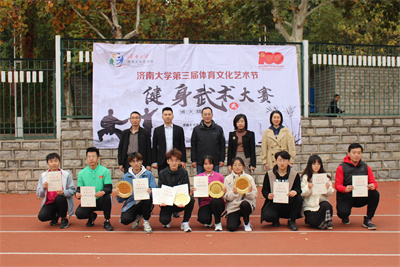 第三届体育文化艺术节健身武术大赛在北苑田径场落下帷幕,来自九个学院的近二百名学生参加了比赛。