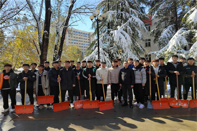 公寓临时党支部组织学生党员、预备党员、积极分子以及联合学生组织于11月7日下午开展扫雪志愿服务活动。