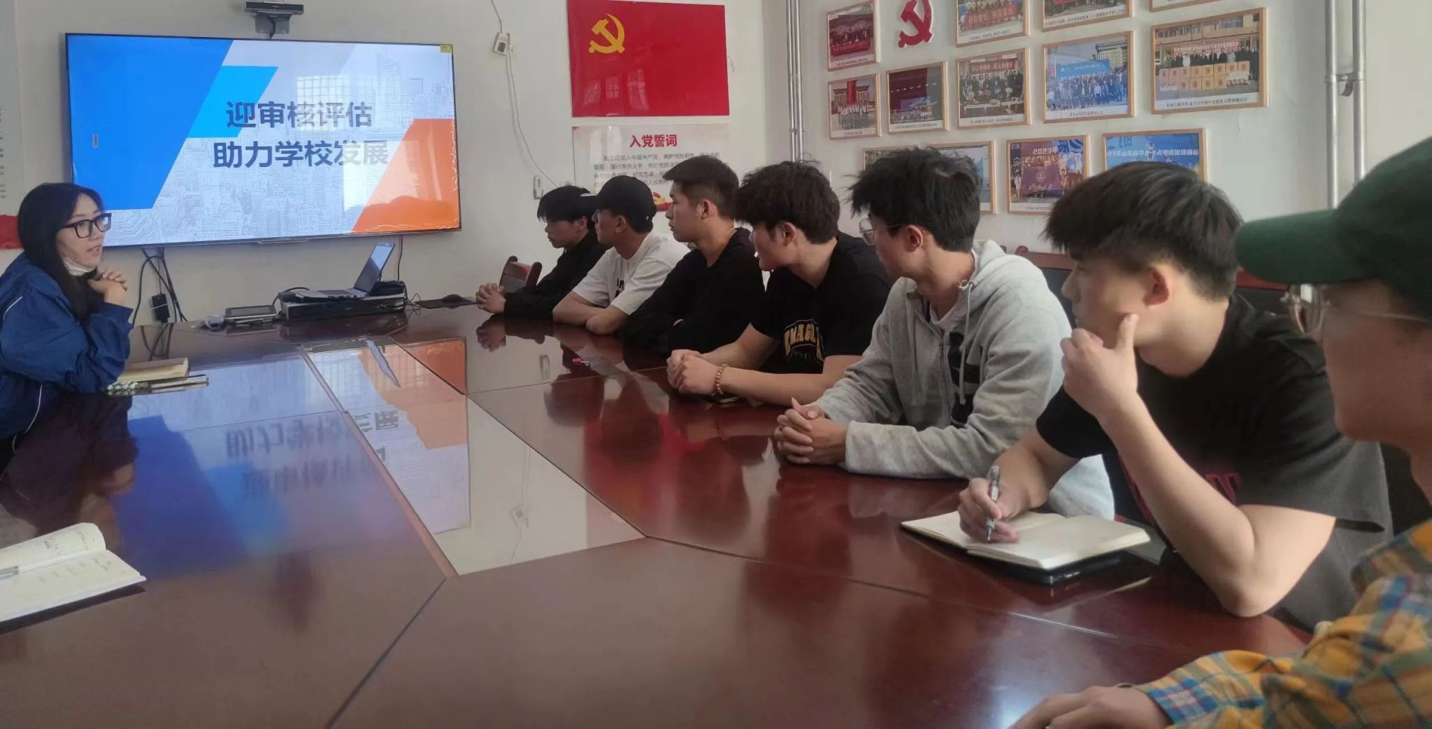 在活动中,班主任老师们带领各班级充分发挥主观能动性,通过多种形式深入宣传审核评估的重要意义。班主任老师们向同学们详细介绍了审核评估的目标、内容和要求,帮助他们更好地理解学校的发展规划和自身的责任,望同学们能将班会上的承诺落实到实际行动中,为学校的发展贡献自己的力量。