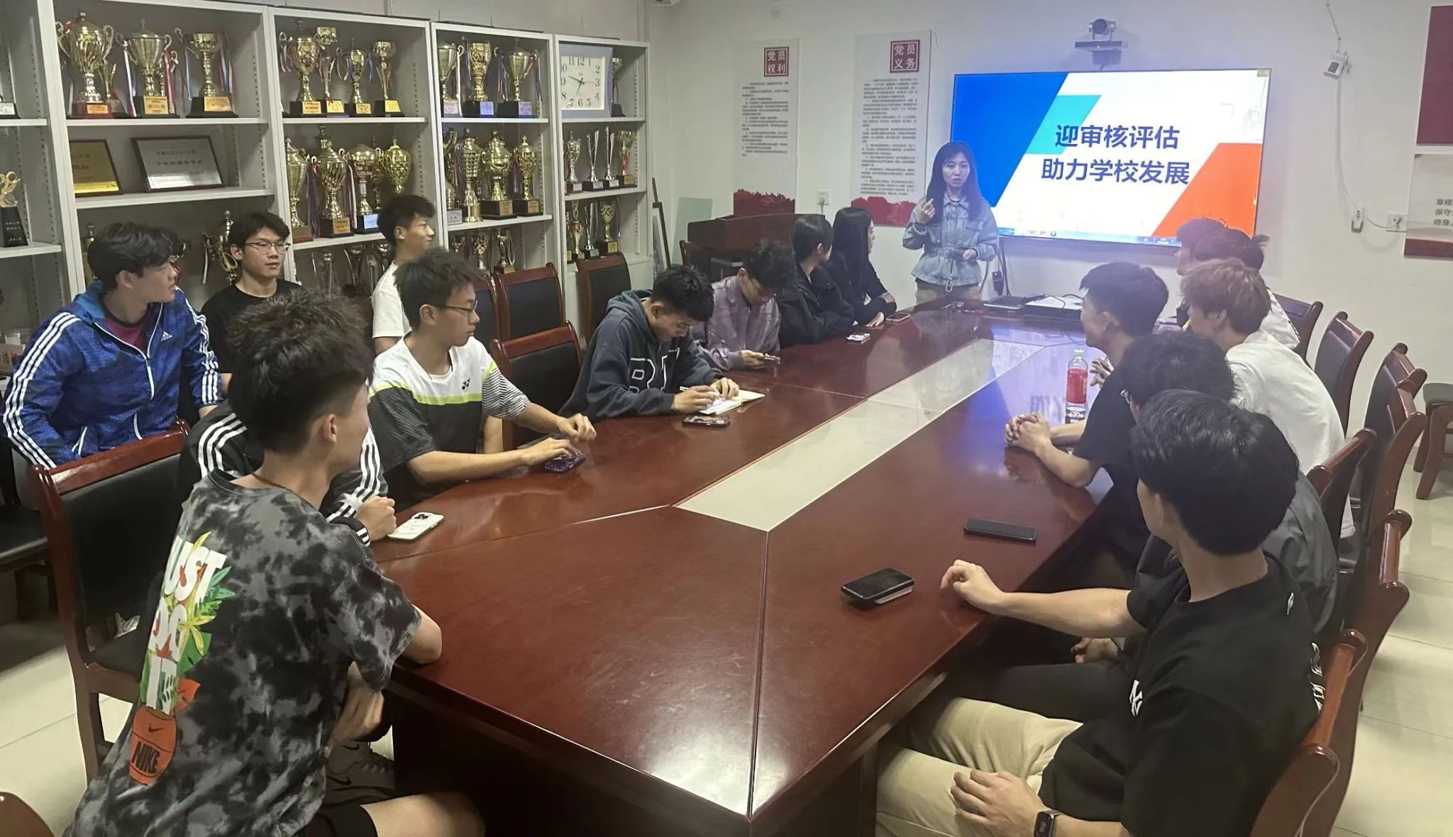 同学们积极参与讨论,纷纷表示将以饱满的热情和认真的态度迎接审核评估。他们承诺在课堂上更加专注听讲,积极参与各项活动,展现出体育学院学生的良好精神风貌。