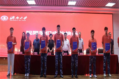 会上学院领导为2024级班主任、班主任助理颁发了聘书。教师代表、2024级班主任纪文亮就同学们在未来的学习、生活中如何更好地为学、为事、为人进行了勉励,希望同学们做立德修身、做勤勉踏实、砥砺前行的济大体育人。在校生代表、学生会主席孙佳铭发言,根据自己两年多的校园经历,鼓励新生严谨治学、脚踏实地、珍惜情谊,绘就属于自己的青春画卷。2024级新生代表袁鹤瑄发言,表达了对大学生活的美好憧憬,呼吁新生一路披荆斩棘,圆梦济大。