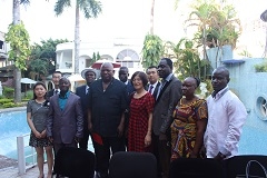 4月3日下午,马利安·恩古瓦比大学孔子学院公派教师杨鹏被聘为刚果(布)国家健美操队总教练签约仪式在布拉柴维尔Saphie Hotel举行,出席此次签约仪式的有刚果(布)健美操联盟主席Bamana François先生、体育部部长秘书Serge Wilfrid mbouma 先生、马利安·恩古瓦比大学孔子学院外方院长NDONGO IBABA先生、中方院长李娜女生、孔子学院志愿者,以及当地电台记者等10余人。