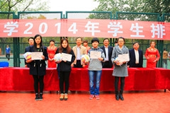 10月28日下午,由济南大学体育运动委员会主办、体育学院承办的济南大学2014年大学生排球赛在北苑排球场落下帷幕。济南大学校长程新,校党委宣传部部长丛晓峰,学生工作处处长贾海宁,体育学院党委书记周明,院长杨磊,党委副书记、副院长张良红亲临决赛现场,并为获奖学院颁发奖杯、证书及奖品。