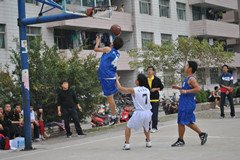 开幕式上,杨院长代表组委会对本次比赛的顺利举行表示热烈的祝贺!对各参赛队全体教练员、运动员、裁判员以及为本次比赛付出辛勤劳动的全体工作人员致以诚挚的问候!首个比赛日,有六场比赛。 其中,体育学院对战历文学院比赛甚是精彩,上半场比赛,体育学院球员迅速地抢球、传球、精准地投篮,双方场上队员对抗异常激烈。上半场结束时,两队比分紧咬,难分伯仲。下半场比赛,易地再战,比赛一开始,双方都严以待阵,体育学院代表队凭着灵活的进攻、严密的防守、果断的传球、精准的上篮与盖帽、完美的团队配合不断扩大比分,完全掌握了比赛的节奏,最终以77比61的比分赢得了比赛的胜利!