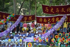 莺歌燕舞,柳絮飞扬。4月的赛场上,美丽的校园沉浸在一片欢乐的运动会当中,运动场上鼓号齐鸣,喊声震天。2016年4月28和29日,济南大学为期两天的春季运动会就此拉开序幕。
