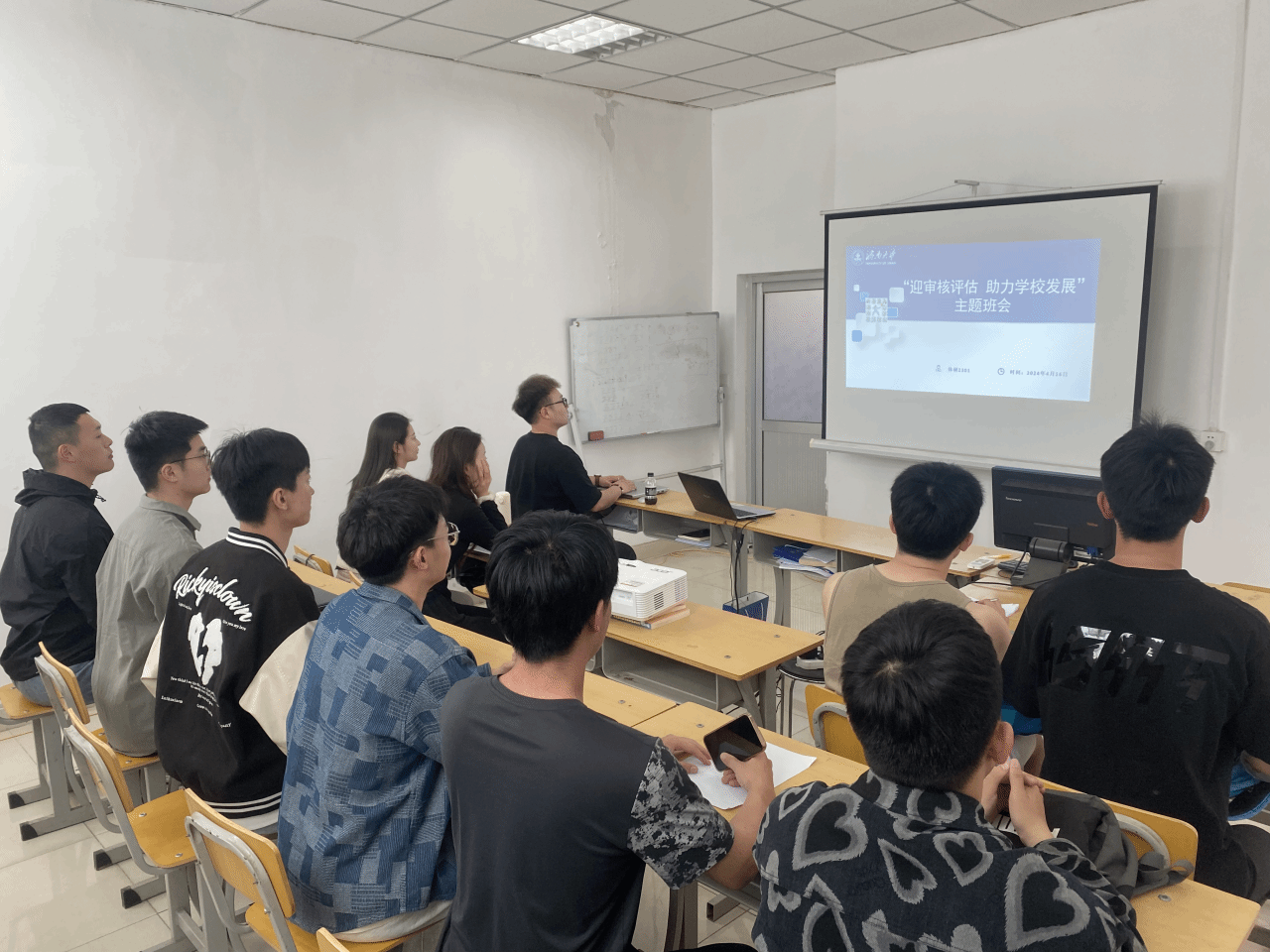 在活动中,班主任老师们带领各班级充分发挥主观能动性,通过多种形式深入宣传审核评估的重要意义。班主任老师们向同学们详细介绍了审核评估的目标、内容和要求,帮助他们更好地理解学校的发展规划和自身的责任,望同学们能将班会上的承诺落实到实际行动中,为学校的发展贡献自己的力量。