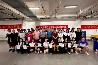 2025年济南大学学生乒乓球比赛于近日落下帷幕,体育学院院长亓圣华,党委副书记副院长郭桂芬,副院长董昱等嘉宾莅临现场为获奖选手们颁奖。